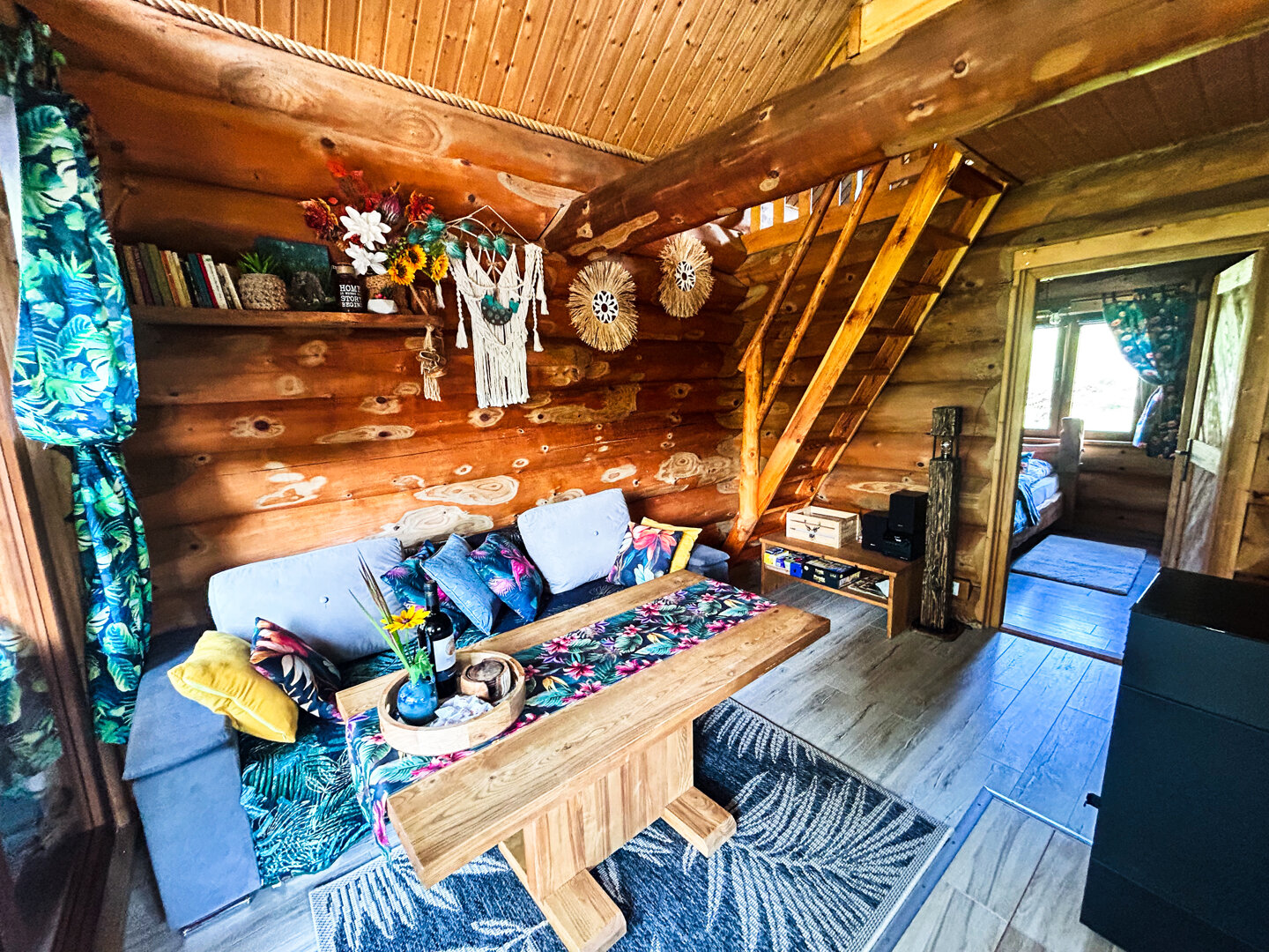 Komfortowa sypialnia: Wykończon w drewnie, z wygodnym łóżkiem małżeńskim i świeżą pościelą, gwarantującą regenerujący sen po dniu spędzonym na szlaku.