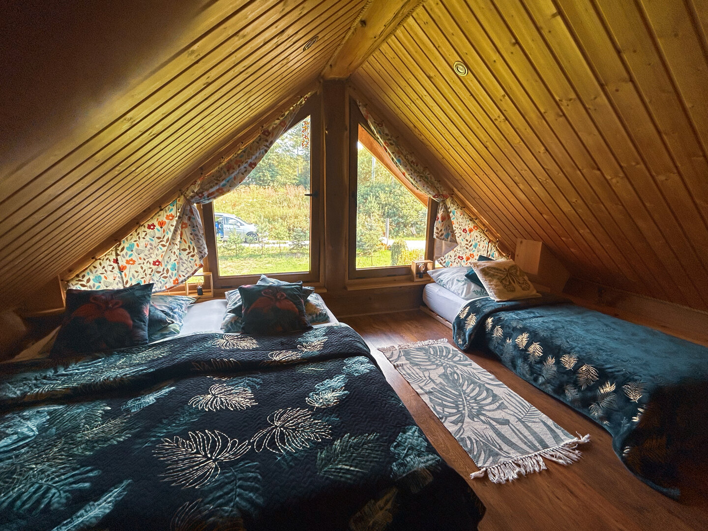- Klimatyczna antresola: Antresola z trzema wygodnymi materacami idealna dla dzieci.
